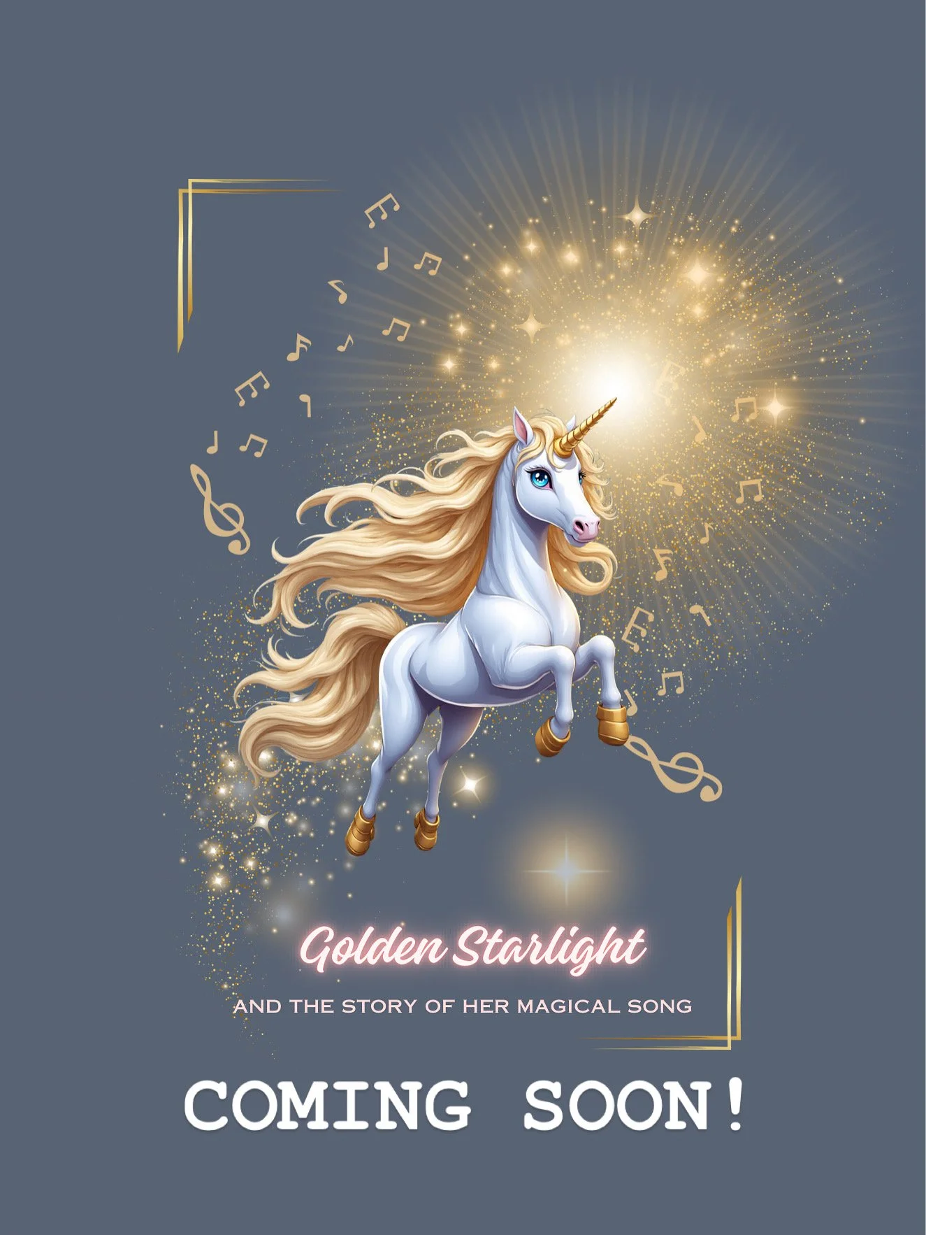 Golden Starlight is a pure white Unicorn who carries the gift of a magical healing song. When she calls upon two kindhearted Alania and Finn, they learn that love grows stronger when it’s shared.